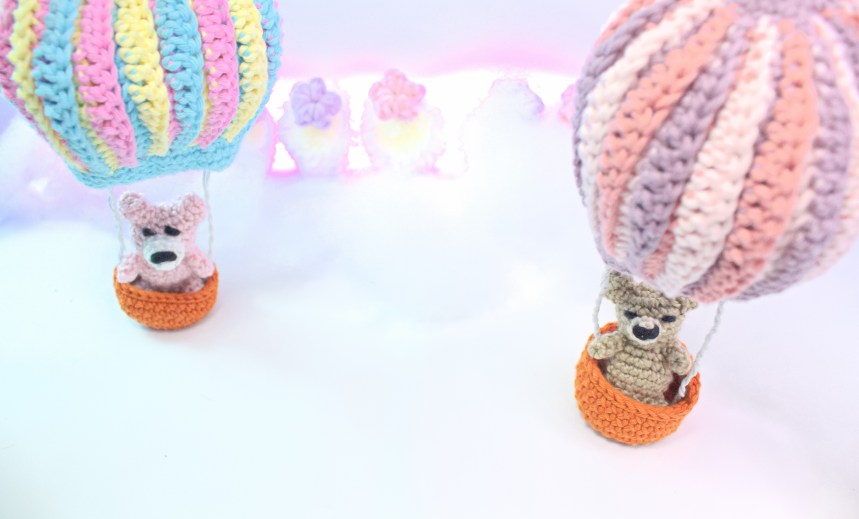 Crochet this cute and colorful hot air balloon for Beary to ride in!